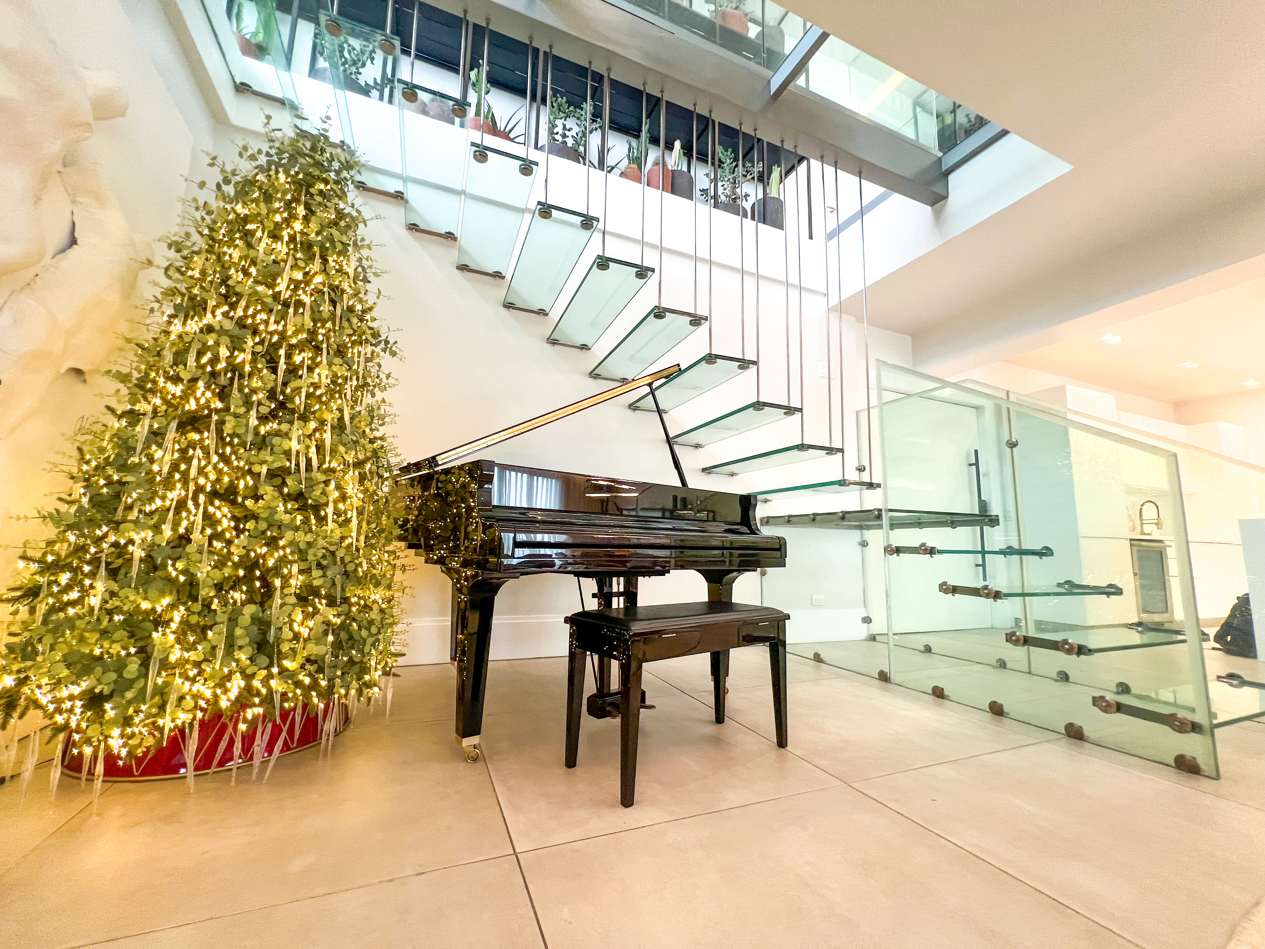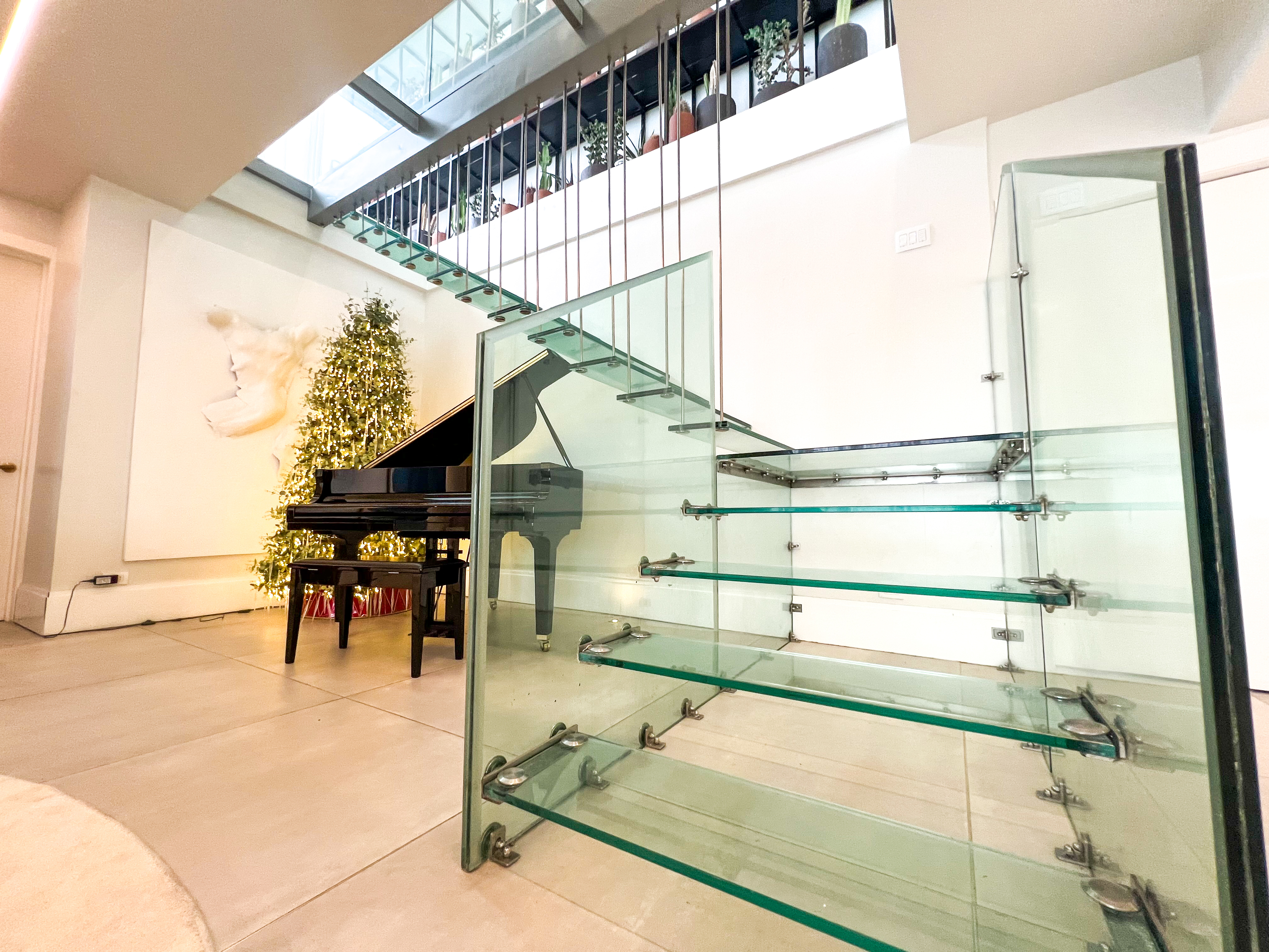 Hermosa escalera en cristal flotante
